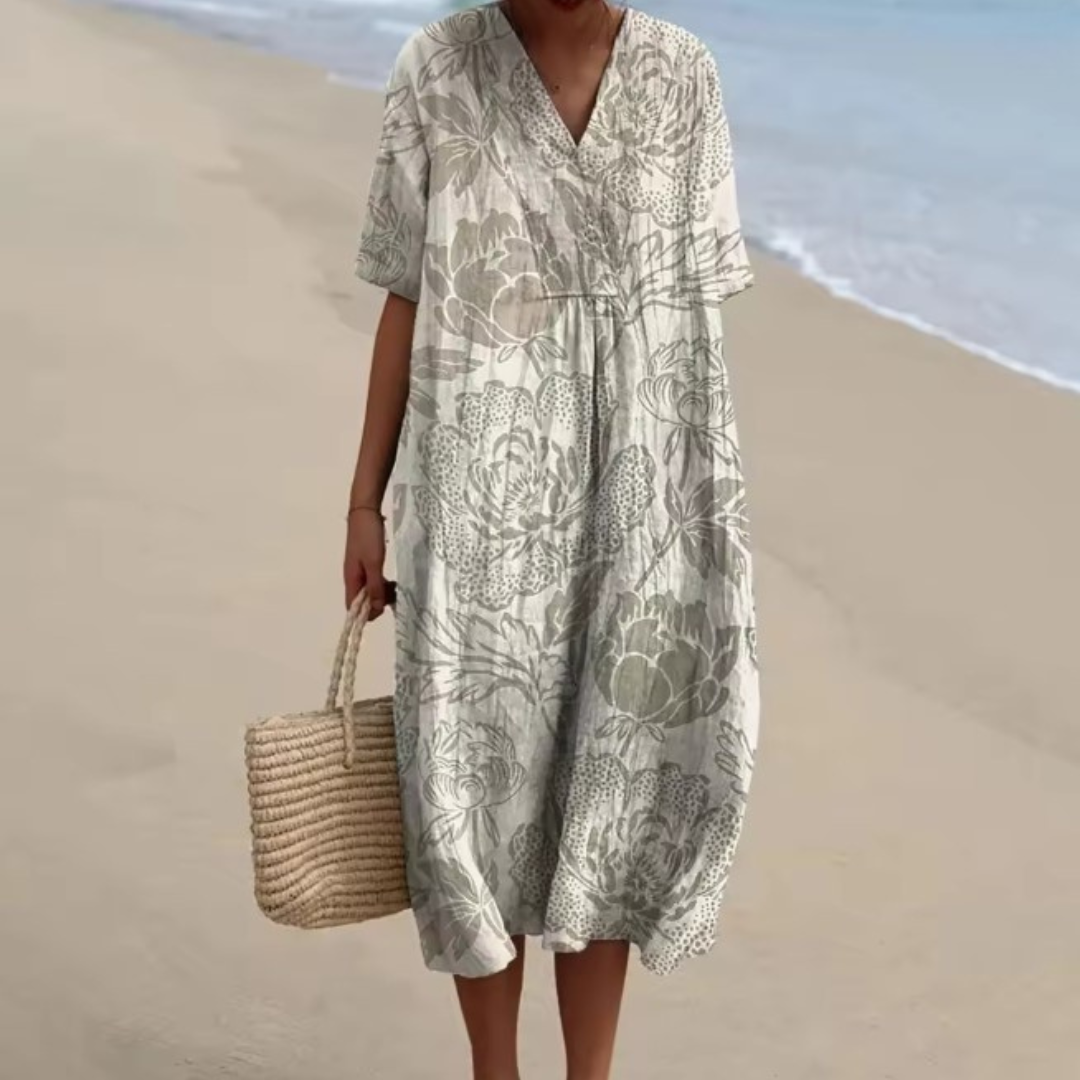 Feel the breeze, stay effortlessly chic, and embrace coastal comfort with the Solara™ Floral Relaxed V-Neck Dress. Add to cart now before stock runs out!