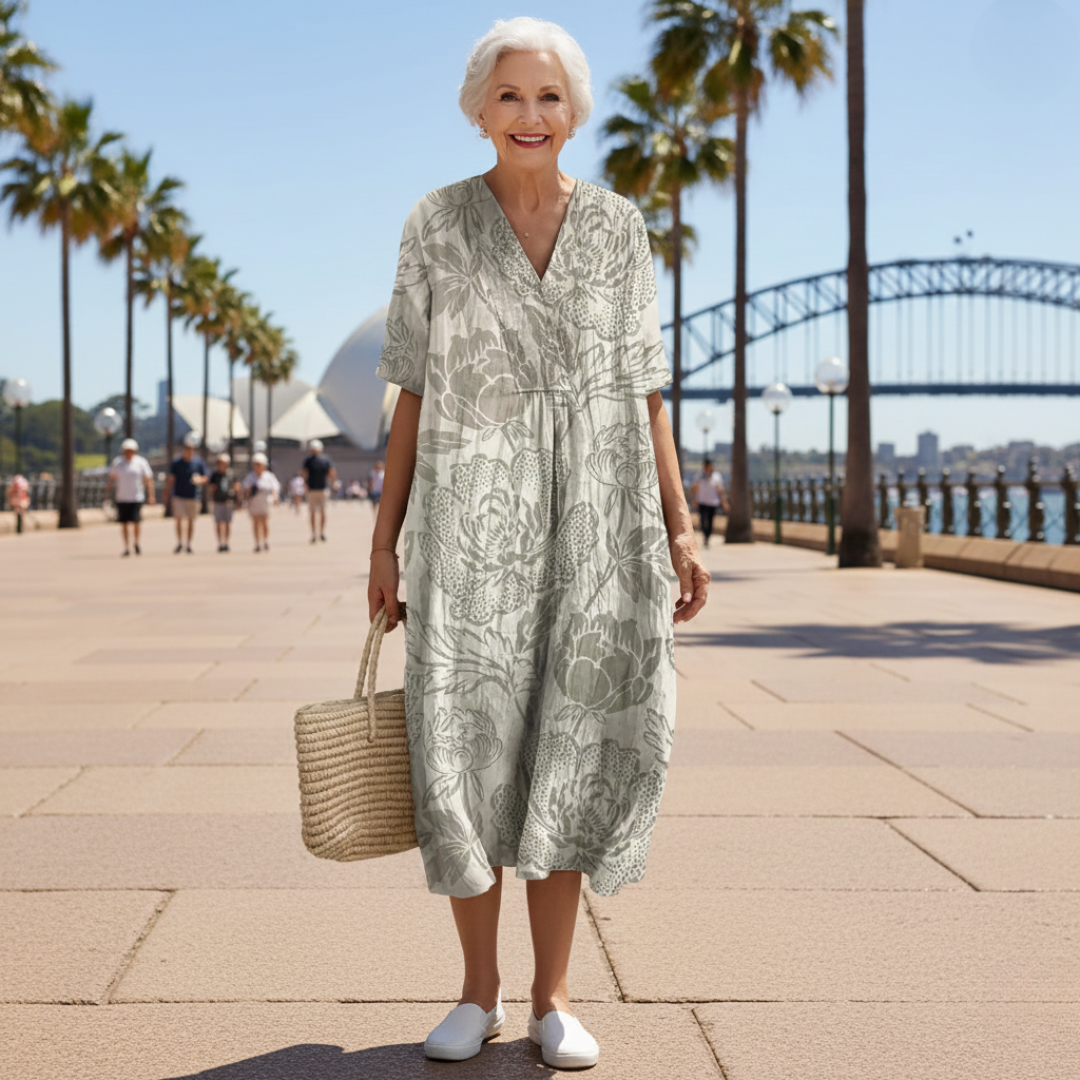 Embrace easygoing coastal style with the Solara™ Floral Relaxed V-Neck Dress—a lightweight, flowy staple designed for Australian women who love comfort without sacrificing elegance. Featuring a soft botanical print, airy silhouette, and flattering V-neckline, this dress keeps you cool and effortlessly chic from seaside strolls to weekend markets.